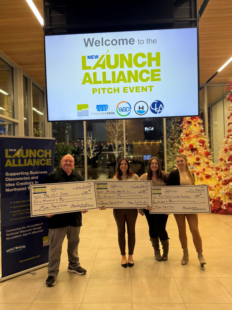 Auvia Health, a company dedicated to changing the way families receive emotional support during and after their maternity journey, was the winner of the NEW Launch Alliance Pitch Event, held Dec. 3 at TitletownTech in Green Bay. The Chill Daddy took second place, while The Nook Lounge and Bookstore placed third. The three winning entries emerged from a group of 10 entrepreneurial pitches which had advanced from local pitch competitions held across Northeast Wisconsin in mid-November.