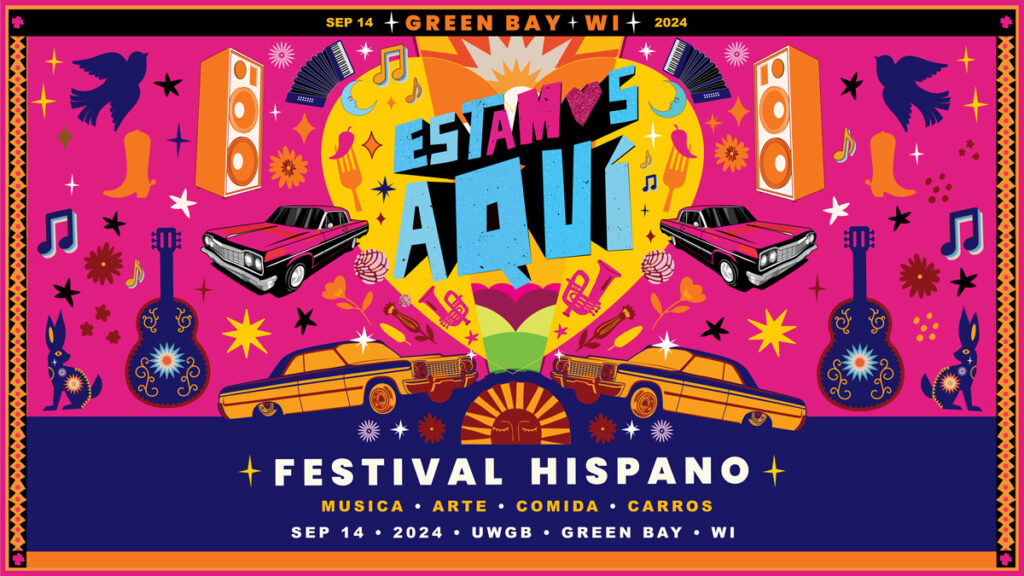 ¡Estamos Aquí! takes place at The Weidner located on the University of Wisconsin-Green Bay campus. The free, outdoor festival is open to the public and features a car show, live music, art, food and more.