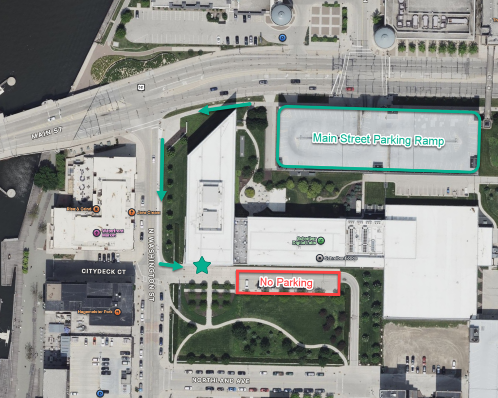 Parking: Suggested parking in the Main Street Ramp. Please follow the signage and/or the map to the entrance on Washington St.